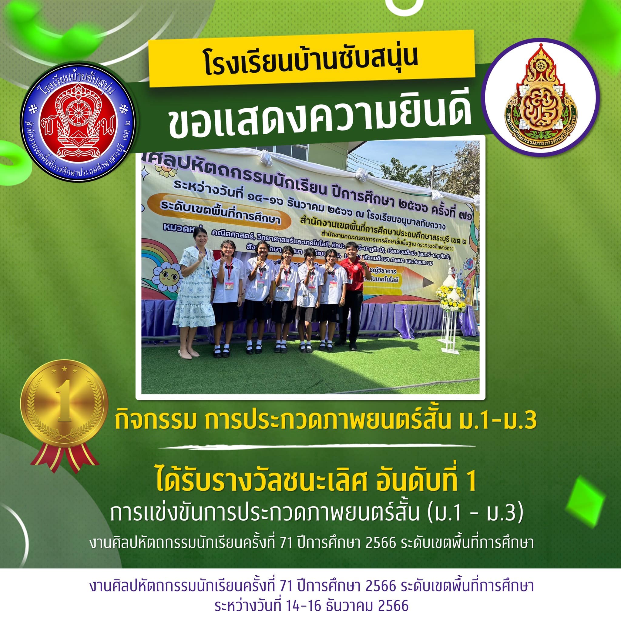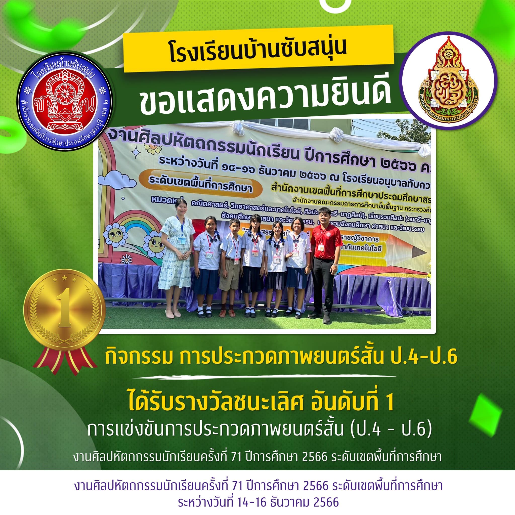 ชนะเลิศการประกวดภาพยนตร์สั้น ป1-6 งานศิลปหัตถกรรมนักเรียน ระดับเขตพื้นที่การศึกษา ครั้งที่71 ปีการศึกษา2566